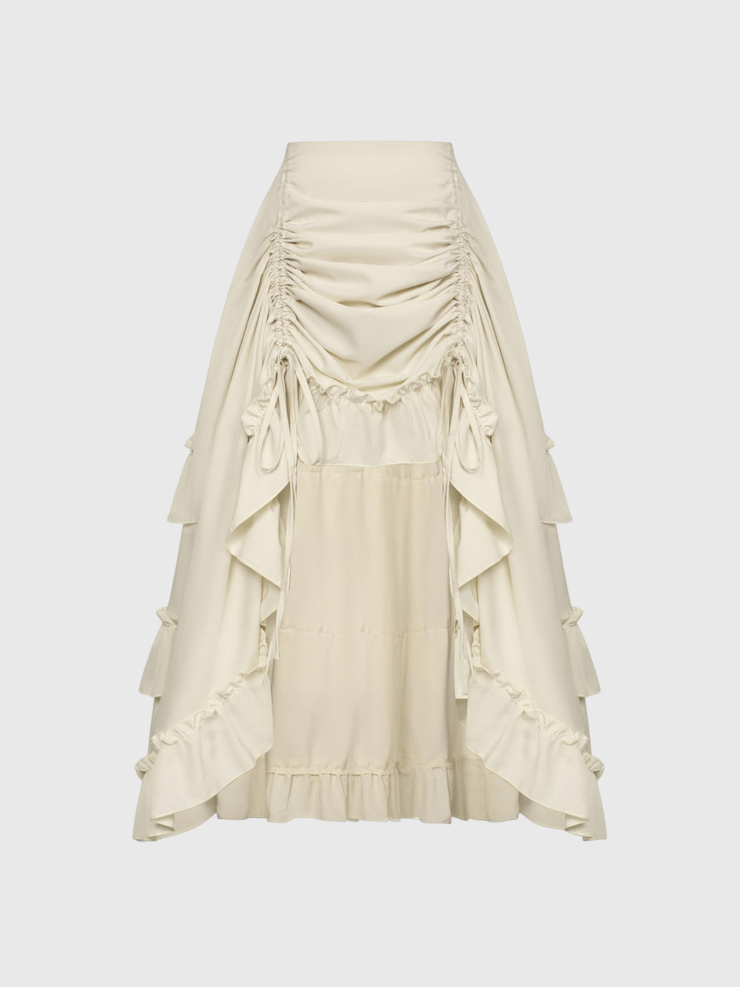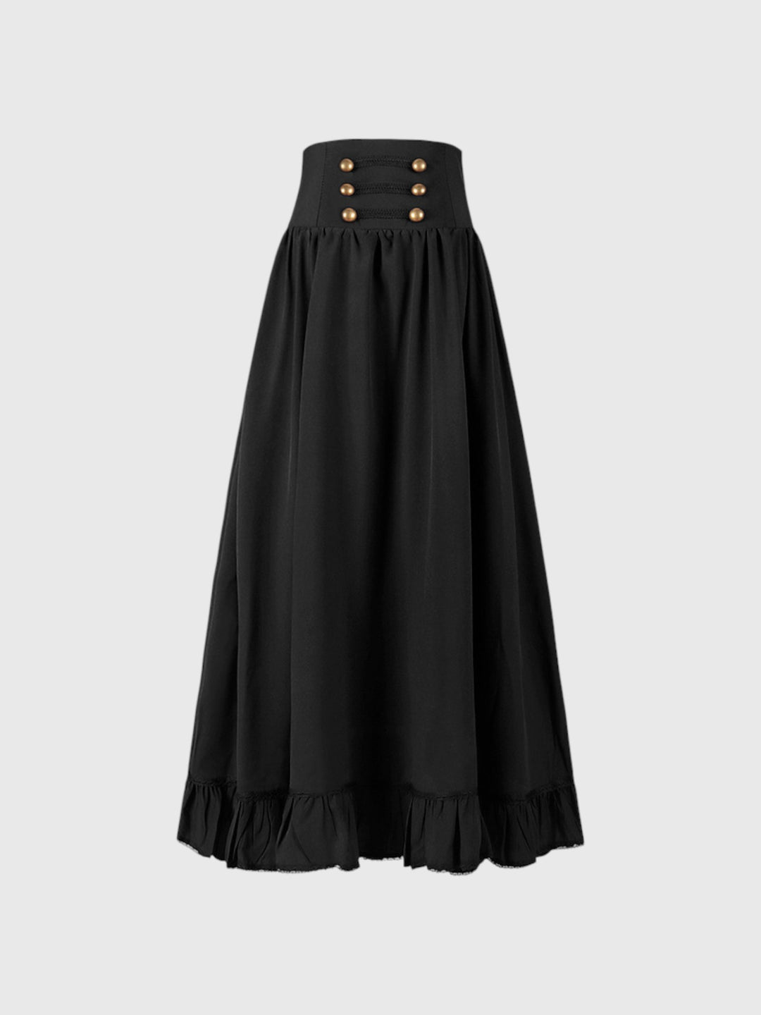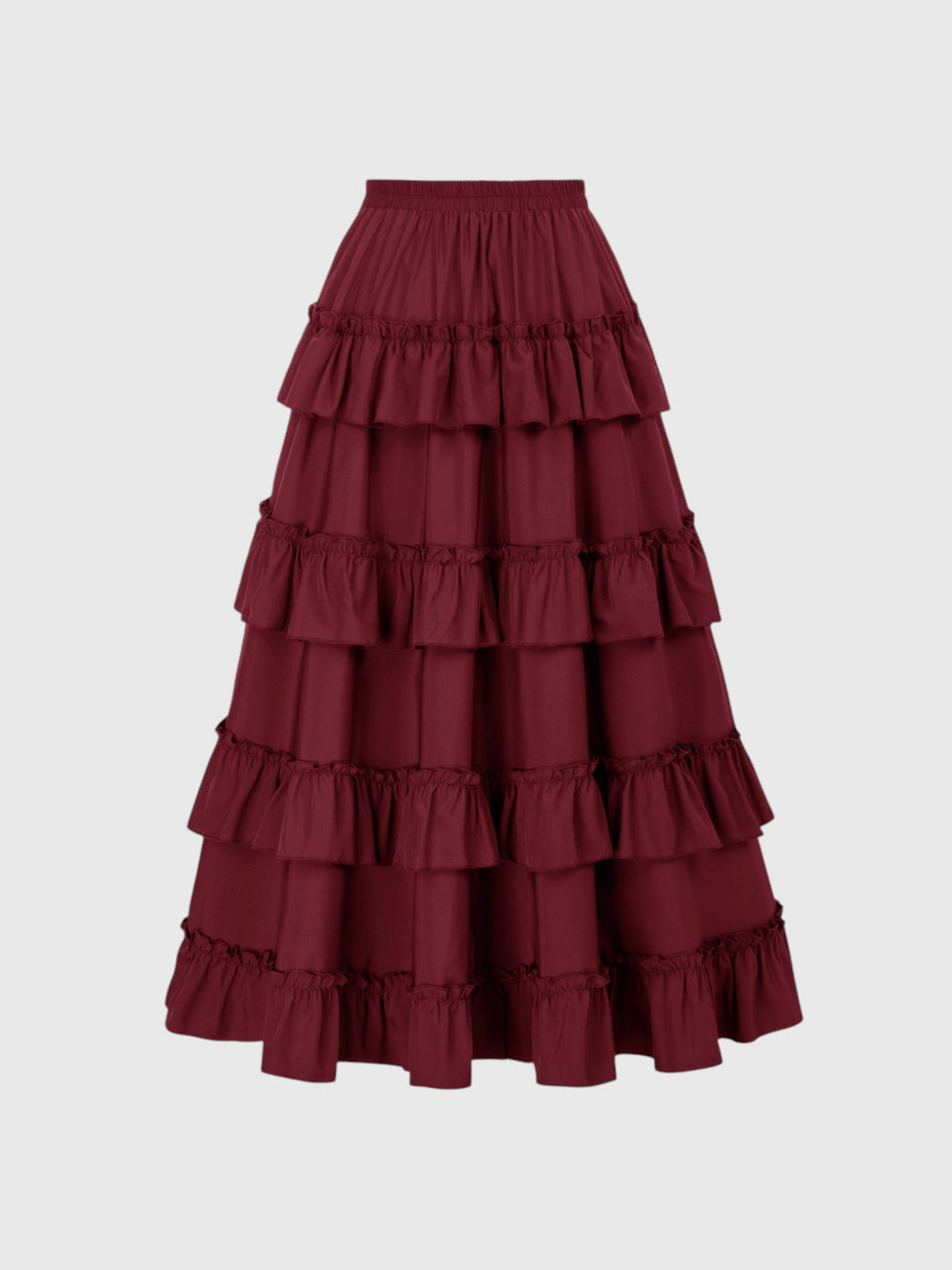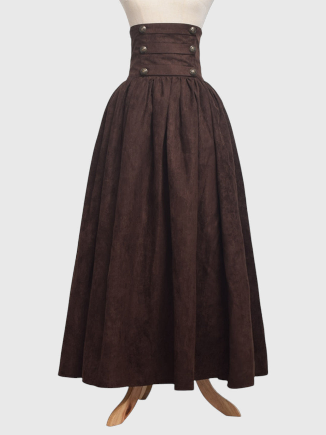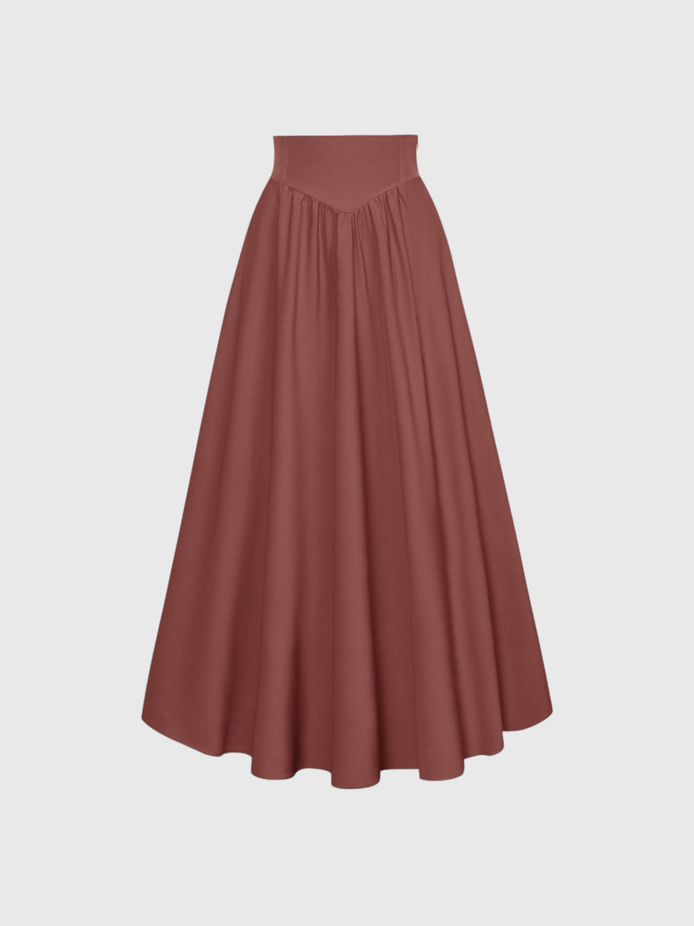 Red-Brown Vintage High Waist Swing Maxi Skirt